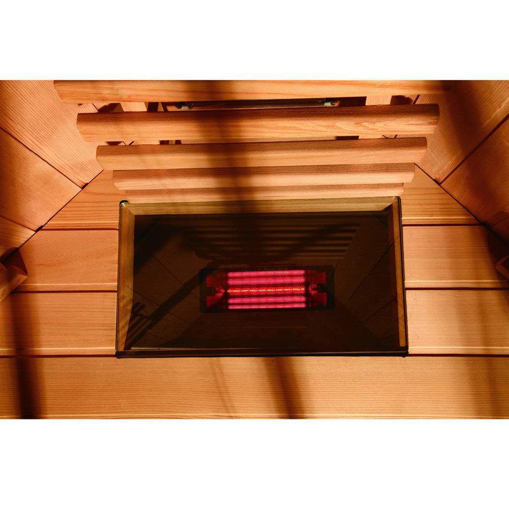 Сауна JK-R2202 изготовлена из прочной и долговечной древесины красного канадского кедра. Этот материал является наилучшим для изготовления сухих саун, так как обеспечивает быстрый и равномерный прогрев воздуха и при этом сам не нагревается до обжигающих кожу температур. Сама сауна JK-R2202 оснащена инфракрасными нагревателями общей мощностью 1950 Вт. Она отлично подойдет для дома или квартиры, так как не требует подключения дополнительной вентиляции и имеет компактные размеры.