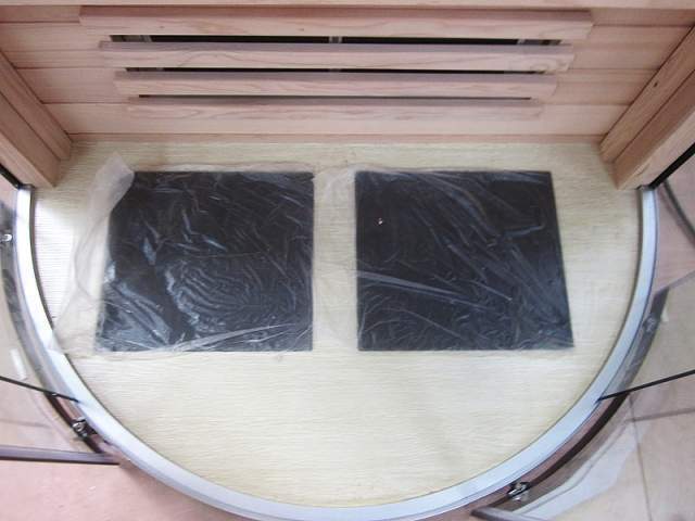 Стильная инфракрасная комнатная сауна с раздвижными дверцами для экономии пространства. Стеклокерамические нагреватели.